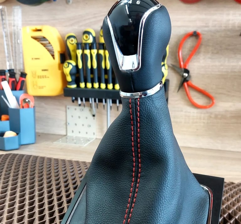 Kokybiškas pavarų svirties apsiuvimas naudojant eko odą.