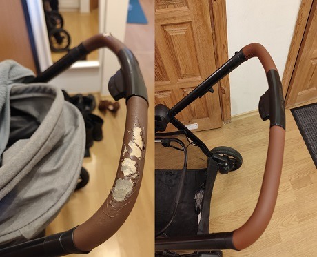 Apsiuvame vežimėlių rankenas ir buomelius, kad jos atrodytų kaip naujos
